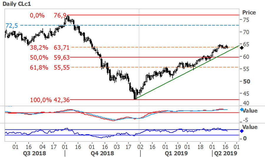 Crude em alta, continua a testar limite superior do canal