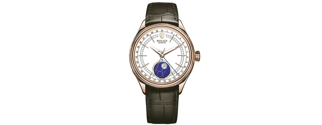 É a Lua que influencia decisivamente a nova proposta da Rolex. Trata-se do novo modelo da colecção Cellini, o Moonphase, equipado com a visualização do ciclo da Lua, numa caixa de 39 mm em ouro Everose 18 quilates. Este tentador Cellini Moonphase está equipado com um mostrador laqueado branco com um disco esmaltado azul nas 6 horas, sobre o qual surgem a Lua cheia e a Lua nova. A fase da Lua lê-se por meio de um indicador situado nas 12 horas do sub-mostrador, em frente ao qual a Lua cheia e a Lua nova surgem alternadamente no curso de um ciclo.