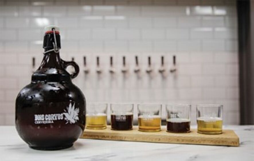 Em permanência estão à venda, todos os dias, 12 tipos de cerveja (um luxo), sendo que, no tal bar, podemos, se tivermos dúvidas, mandar vir um kit mimoso de amostras que dão para duas pessoas perceberem quais as cervejas que gostam mais. Agora, o que é curioso na Dois Corvos é o conceito de venda a "garrafão". Enfim, não é bem um garrafão, mas um vasilhame de vidro de 1 e de 2 litros. Um tipo compra uma destas grandes e bonitas garrafas e abastece-se da cerveja que mais lhe agrada e vai para casa apreciá-la com os amigos. Da próxima vez, traz o "garrafão" e leva outro perfil de cerveja. Bem pensado.